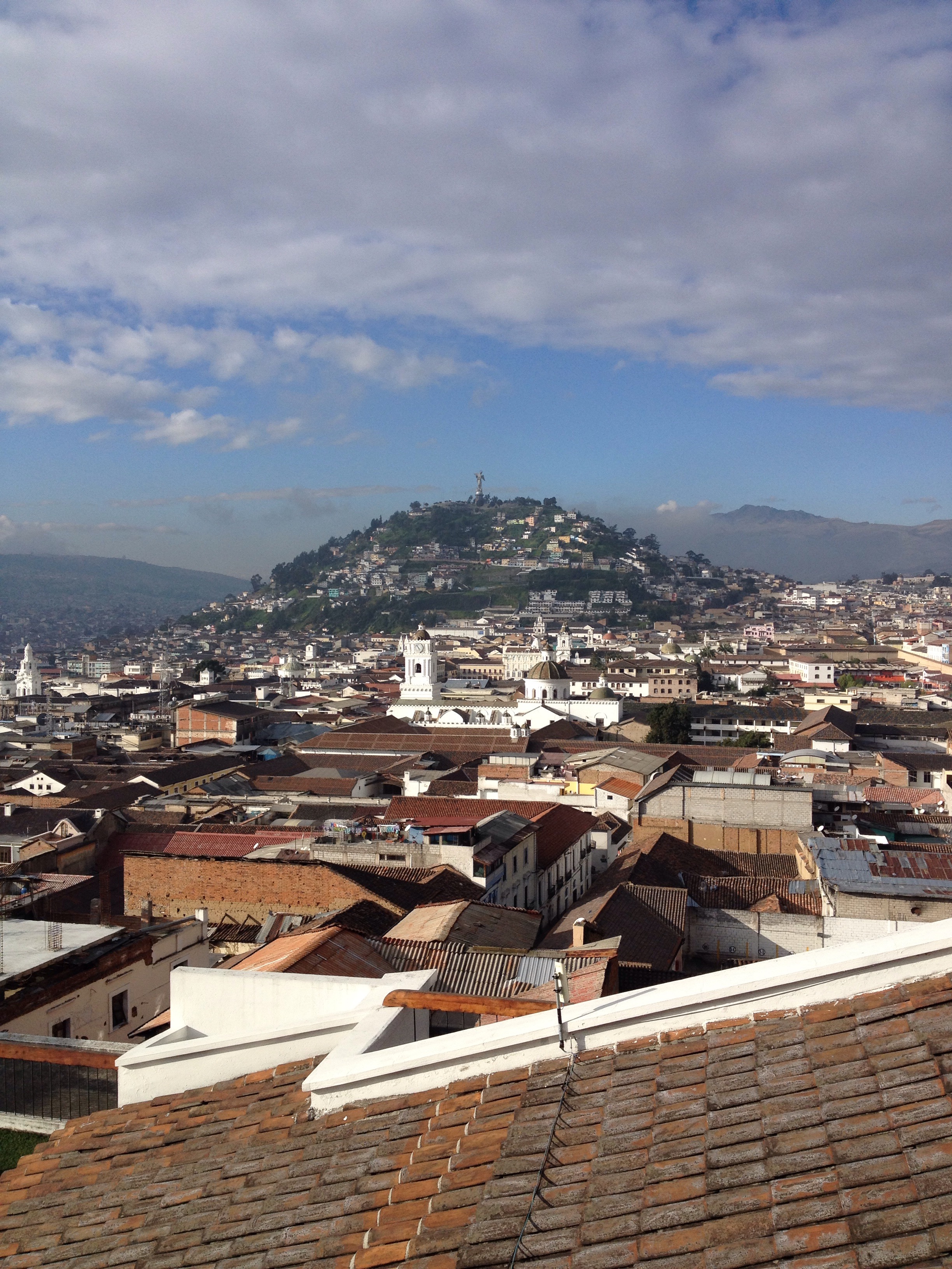 Despite our late arrival after midnight the night before, we awoke early on Sunday morning, February 20. We were amazed by the exquisite view of Quito’s historical center (“Centro Historico”) from the balcony outside the bedroom of our apartment (see photo).