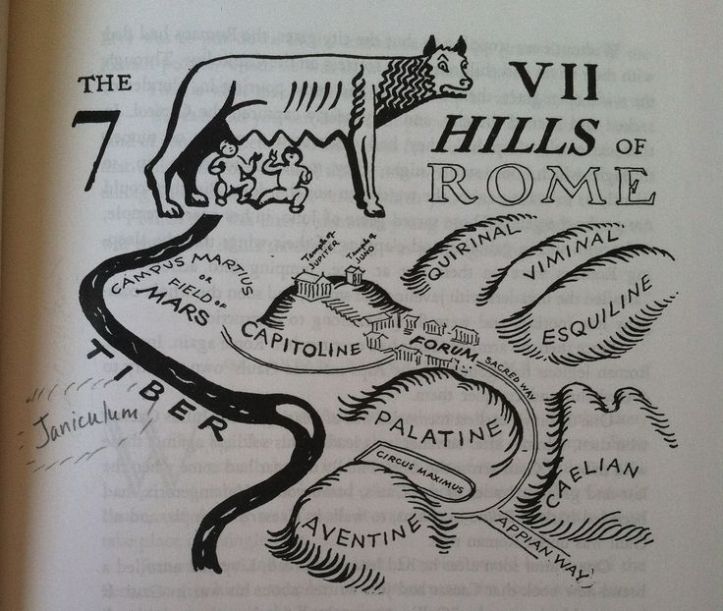 Seven Hills of Rome with Janiculum Penciled In